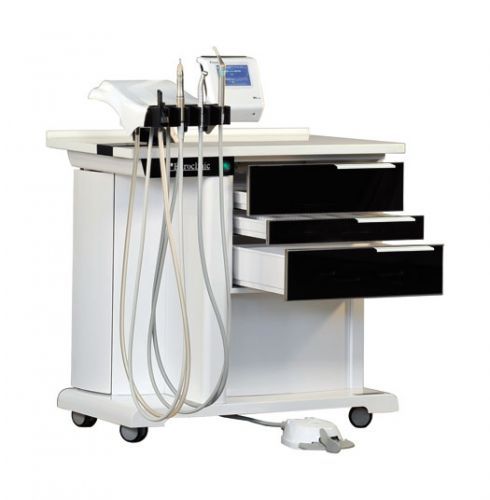 Podiatry unit equipped with innovative tablet housing up to 4 instruments each one operated by PENDING CORDS. The case is mobile on 4 antistatics castors with brakes that help the operator in floor cleaning as well as in the easy positioning anywhere in the outpatient room.